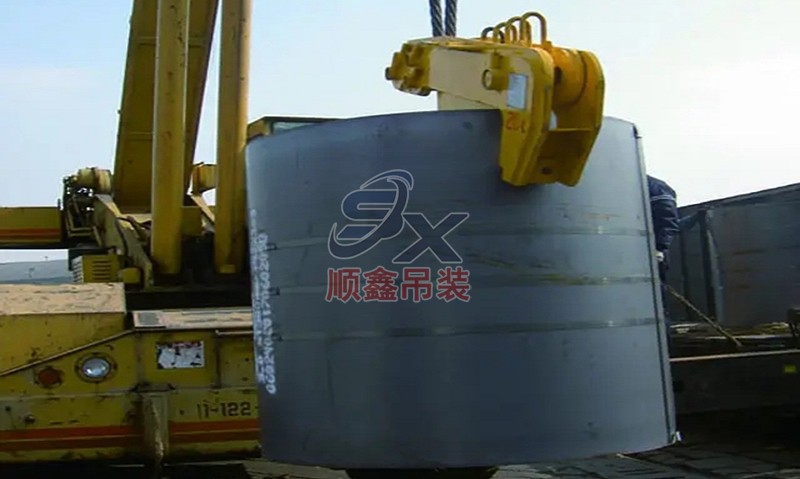 翻轉吊具通過機械剪力原理,對立式擺放的卷鋼進行單邊抓取,來完成卷鋼的裝卸,當改變重力點時,可以對卷鋼進行翻轉,作業(yè)時不傷鋼卷。其吊耳采用加厚處理,焊縫飽滿牢固、延長使用壽命。